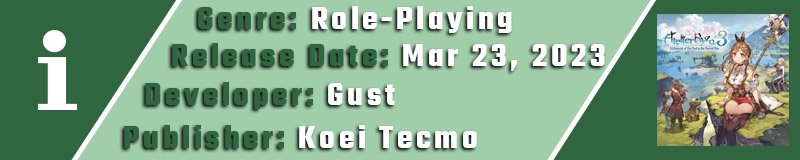 Αυτά τα μικρά θέματα δεν είναι αρκετά όμως από το να μας απωθήσουν από την εμπειρία που έφτιαξε η Gust. To τρίτο παιχνίδι της σειράς μοιάζει καλύτερο από ποτέ, με αισθητές βελτιώσεις στο σύστημα μάχης και σε ορισμένα θέματα στην ποιότητα ζωής. Το βασικό gameplay είναι άκρως εθιστικό και μας ωθεί στο να ανακαλύψουμε κάθε γωνιά αυτού του φανταστικού κόσμου. Εδώ συστήνεται η αναπαραγωγή των δύο πρώτων τίτλων για να μπορέσουμε να “μπούμε” για τα καλά στον κόσμο και την γενικότερη ατμόσφαιρα αλλά και ως αυτοτελής τίτλος κάνει μια καλή δουλειά στο να μας μάθει όλα όσα χρειαζόμαστε.