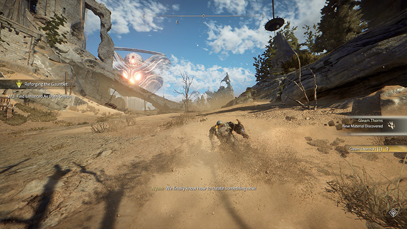 Εδώ έχει σημασία να δούμε αν το Open-World RPG υποστηρίζεται καλά από την μετακίνησή μας σε κάθε χάρτη. Το βασίλειο είναι μια απέραντη έρημος γεμάτη συντρίμμια, θαμμένα κτίρια και άλλες εκπλήξεις που μας περιμένουν σε σπηλιές ή χωριά. Ο ήρωάς μας έρχεται σε επαφή με το Gauntlet, που όπως και στο Forspoken, μας μιλάει και μας καθοδηγεί. Ευτυχώς, αυτές οι συνομιλίες δεν είναι ανυπόφορες ή επιθετικές όπως στον τίτλο της Square με αποτέλεσμα να αποδίδουν μια πιο φρέσκια εμπειρία καθώς και μια πιο ευχάριστη ατμόσφαιρα. Το Gauntlet, ως το επίκεντρο της προσοχής είναι ένα μεγάλο όπλο το οποίο χρησιμοποιούσαν οι ήρωες του παρελθόντος αλλά τους πρόδωσε με αποτέλεσμα το βασίλειο να φτάνει στην καταστροφή.