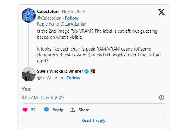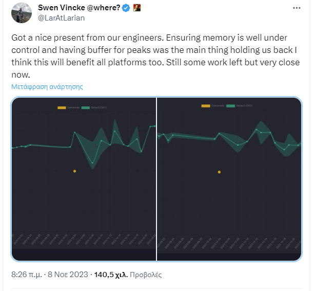 Μάλιστα έχουμε και φρέσκα νέα. Ο Διευθύνων Σύμβουλος της Larian Studios, Swen Vincke, ανέβασε στο Twitter πριν από λίγες ώρες, κάποια γραφήματα, αποκαλύπτοντας ότι η ομάδα του BG3 έχει λύσει το “κυρίο πράγμα που τους κρατάει πίσω” με το παιχνίδι στο Xbox Series S, και προφανώς θα ωφελήσει και όλες τις πλατφόρμες. Μάλλον επιτέλους στρώθηκαν στην δουλειά.