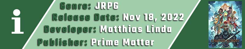 Το σύστημα μάχης του Chained Echoes αναδεικνύει την προσοχή που έχει δώσει ο Matthias Linda στο gameplay. Το δύσκολο στα σύγχρονα turn-based rpg είναι να υπάρχει σεβασμός στον χρόνο του παίκτη και να δίνεται κίνητρο για να συνεχίζουμε να παίζουμε. Εδώ, η απλότητα συναντά την παράδοση σε μια μοντέρνα δημιουργία που ξεφορτώνεται τα αρνητικά του παρελθόντος και τα αντικαθιστά με ευπρόσδεκτους μηχανισμούς που μας ανταμείβουν για την εξερεύνηση τους.