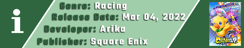 Το Chocobo GP δεν είναι το πρώτο παιχνίδι της σειράς. Πριν πολλά χρόνια, το Chocobo Racing διαδέχθηκε πολλούς αντίστοιχους τίτλους όπως το Crash Team Racing και έγινε αγαπητό τόσο από φίλους της σειράς Final Fantasy όσο και από άλλους παίκτες σε όλον τον κόσμο. Μπορούμε να πούμε με ασφάλεια πως ήταν ένας τίτλος που μεγάλωσε την γενιά μας και έγινε αγαπητός κυρίως για αυτόν τον λόγο. Ως κάποιος που δεν έτυχε ποτέ να παίξω τον τίτλο, μπαίνω στο Chocobo GP με άγνοια (κυρίως κινδύνου) και με μια vanilla ματιά σε όλους τους μηχανισμούς και την αισθητική.