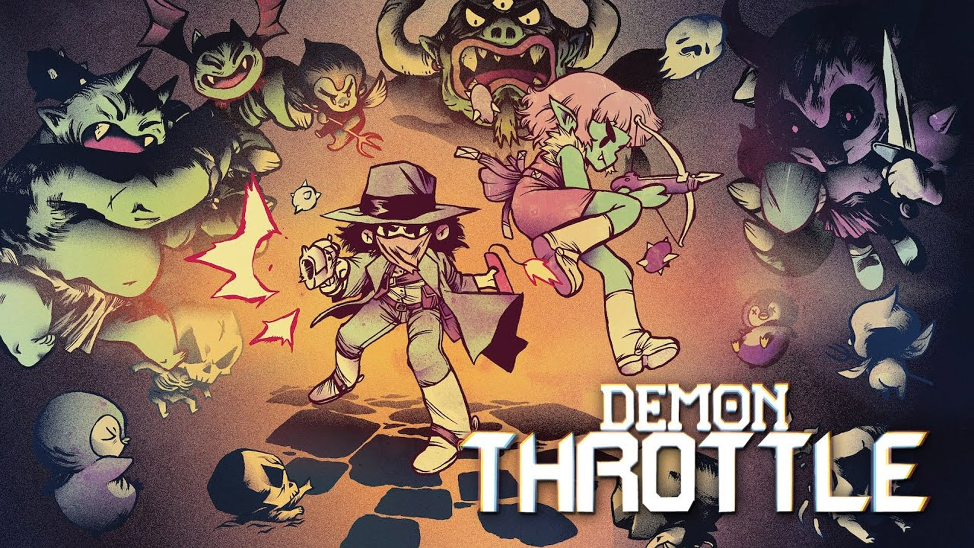Η ιστορία του Demon Throttle είναι όσο απλή ήταν και εκείνη των παλιών παιχνιδιών. Η υπόθεση είναι υπέροχα παράλογη και επικεντρώνεται σε έναν cowboy του οποίου η γυναίκα φίλησε έναν δαίμονα. Ο ηρωάς μας λοιπόν ξεκινάει ένα ταξίδι για να πολεμήσει αυτόν τον δαίμονα και συνεργάζεται με μια βρυκόλακα της οποίας έκλεψαν τα δισκοπότηρα, κάτι που την καλεί να επιστρέψει στον κόσμο των ζωντανών. Αυτή η ιδιόμορφη μικρή πλοκή λειτουργεί χάρη στην διασκεδαστική γραφή που δεν είναι σοβαρή ή επιβλιτική αλλά αρκετή για να μας δώσει την αφορμή για όλα όσα θα ακολουθήσουν. Εκτός από μερικά μικρά cutscenes και γραμμές διαλόγου, το παιχνίδι αποτελείται από ασταμάτητη δράση και σφαίρες.