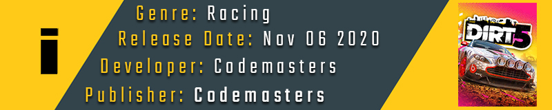 Έφτασε η ώρα λοιπόν που στα χέρια μου κράτησα άλλο ένα racing game της φετινής χρονιάς, άλλο ένα πολυαναμενόμενο Dirt. H εταιρία ανάπτυξης Codemasters μας παρουσίασε στις το νέο της project έχοντας στο εξώφυλλο του παιχνιδιού την Aston Martin Vantage GT4. Το παιχνίδι κυκλοφόρησε για PS4, Xbox One και PC στις 6 Νοεμβρίου, ενώ στις 10 και 12 του ίδιου μήνα πήραν σειρά και τα Xbox Series X/S και PS5 αντίστοιχα. Όσον αφορά το Google Stadia, το Dirt 5 θα κυκλοφορήσει μέσα στο 2021. Από εκεί και πέρα μόνο από το εξώφυλλο του παιχνιδιού ένα έμπειρο μάτι θα καταλάβει ότι κάτι άλλαξε. Το αν οι αλλαγές που έγιναν είναι καλές ή κακές θα το αναλύσουμε παρακάτω, στο review του παιχνιδιού.