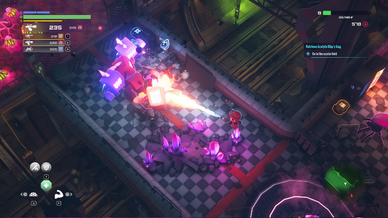 Ο έλεγχος του χαρακτήρα μας είναι αρκετά εύκολος ενώ το twin-stick shooting είναι αρμονικά συνδυασμένα. Φυσικά, υπάρχουν και κινήσεις ώθησης που μας βοηθούν να αποφύγουμε εχθρικά πυρά ή κινήσεις ενώ μπορούμε να εντοπίσουμε και μια πληθώρα από χρήσιμα αντικείμενα.