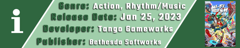 Τι είναι το Hi-Fi Rush, θα σας πω μόνο να φανταστείτε το αγαπημένο σας κόμικ και κάποιος μια μέρα να σας πάρει και να σας πετάξει μέσα σε αυτό, στον ρόλο του κεντρικού χαρακτήρα, κάνοντάς να μην θέλετε να τελειώσει ποτέ, καθώς θα μπορέσετε να κάνετε το όνειρό σας πραγματικότητα, σε έναν φανταστικό κόσμο, διασκεδάζοντας! Οπότε, το Hi-Fi Rush, μπορεί να είναι και κάτι παραπάνω από ένα παιχνίδι για τον καθένα μας. Στην περίπτωσή μας, είναι ένα αγόρι με την κιθάρα του.