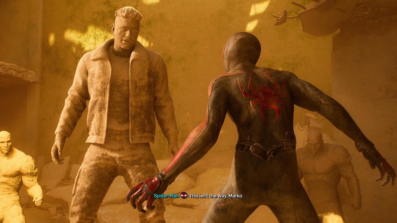 Πριν κλείσω όμως για το σενάριο και την γραφή, να σημειώσω ότι ο Harry Osborn επιστρέφει ως παιδικός φίλος του Peter και δίνει μια υπέροχη ερμηνεία σε όλα τα επίπεδα, και πως ο Venom είναι αυτό ακριβώς που πρέπει να είναι. Εντωμεταξύ, επειδή οι τελευταίες επαφές που είχα με τον Venom ήταν από τις δύο ταινίες του, το μυαλό μου έμπαινε σε ‘buddy mode’ κάθε φορά που άκουγα τον ίδιο τον Venom να μιλάει και περίμενα τον Tom Hardy να του πει να το βουλώσει. Μερικοί από τους villains των προηγουμένων παιχνιδιών επιστρέφουν ως υποστηρικτικοί χαρακτήρες, ανάμεσα τους ο Martin Li (Mr. Negative) καθώς και ο Quentin Beck (Mysterio) που έως τώρα είχε μόνο αναφερθεί στο πρώτο παιχνίδι.