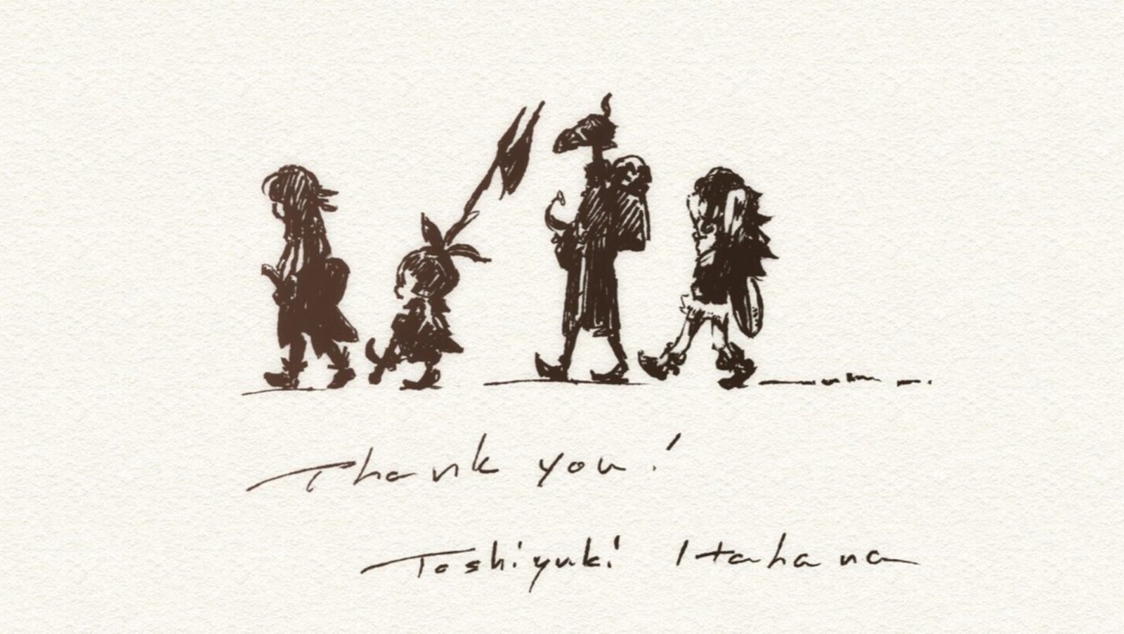 Σε όλους όσους παίξατε τα παιχνίδια που δούλεψα στη Square Enix και σε όλους όσους είχα τη ευχαρίστηση να συνεργαστώ όλα αυτά τα χρόνια, σας ευχαριστώ πολύ. Θα ήθελα να εκφράσω την εγκάρδια ευγνωμοσύνη μου και ειλικρινά ελπίζω για τη συνεχή σας υποστήριξη στο μέλλον.”