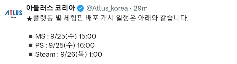 Φαίνεται ότι η Atlus “ανακοίνωσε” ότι στις 25 και 26 Σεπτεμβρίου θα γίνει διαθέσιμος δωρεάν ο πρόλογος του παιχνιδιού. Παρακάτω μπορείτε να δείτε και τις πλέον διαγραμμένες δημοσιεύσεις από τον λογαριασμό τους στην πλατφόρμα: