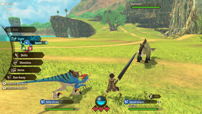 Η μάχη ξεκινά όταν έρθετε σε επαφή με ένα monster στην περιοχή που κινείστε. Πρόκειται για turn based σύστημα θεμελιωμένο στο παιχνίδι «πέτρα-ψαλίδι-χαρτί» όπου τον αντίστοιχο ρόλο έχουν οι επιθέσεις με το τρίπτυχο Power, Speed και Technical όπου το Speed εξουδετερώνει το Power, το Power το Technical και το Technical το Speed. Αυτό, φυσικά, εξαρτάται από το αντίστοιχο πρόσημο της παραπάνω τριάδας που φέρει ο εχθρός. Φαίνεται -και πράγματι είναι- πολύ απλοϊκό αλλά όσο εξελίσσεται το παιχνίδι θα εντοπίσετε επιπλέον στοιχεία που θα σας εκπλήξουν ευχάριστα. Αυτό που, επίσης, έχει σημαντικό ρόλο είναι ο τύπος του όπλου που χρησιμοποιείτε για πιο δραστική επίθεση. Έτσι, τα τέρατα εκτός από τα χαρακτηριστικά που εξετάσαμε λίγο πιο πάνω έχουν και την αντίστοιχη αδυναμία σε συγκεκριμένα όπλα, όπως τα Pierge, Slash και Blunt. Ανάλογα, λοιπόν, και το όπλο με το οποίο είστε εξοπλισμένοι θα έχετε καλύτερα αποτελέσματα στη μάχη but there’s a catch.. Κάποια σημεία στο σώμα τους είναι ευάλωτα σε διαφορετικές επιθέσεις οπότε θα χρειαστεί εν μέσω της μάχης να χρησιμοποιήσετε το swap ώστε να επιλέξετε το κατάλληλο όπλο. Επίσης, τα Monsties σας, δηλαδή τα τέρατα που έχετε «συλλέξει» και αποτελούν συμμάχους σας, διαθέτουν τα δικά τους skills, όπως και ο ήρωάς μας άλλωστε, και στατιστικά τα οποία κι αυτά με τη σειρά τους πρέπει να ακολουθούν τους παραπάνω κανόνες.