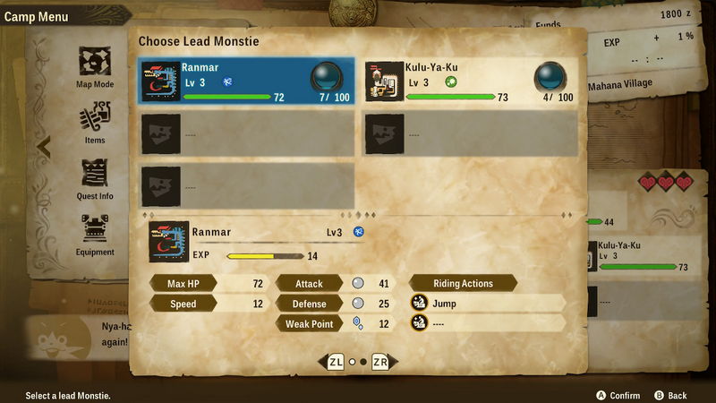 Ουσιαστικά, η μάχη είναι ένας συνδυασμός εξουδετέρωσης των αντιπάλων μέσω των Power, Speed και Technical, των εναλλαγών με τα κατάλληλα όπλα αλλά και της σωστής επιλογής μεταξύ των έξι Monsties που θα έχετε στο party σας ώστε να αντιμετωπίσετε επιτυχώς τους αντιπάλους στοχεύοντας στα αδύναμα σημεία τους. Με το Monstie σας θα έχετε τη δυνατότητα για συγχρονισμένες επιθέσεις, τις λεγόμενες Double Attacks, ώστε να προβαίνετε σε πιο δραστικές κινήσεις, μπορείτε το χρησιμοποιήσετε ως mount και να επιδίδεστε σε ειδικές επιθέσεις όταν γεμίσει μια συγκεκριμένη μπάρα, θα ανταμείβεστε αν μαντέψετε την επίθεσή του στον αντίπαλο και άλλα πολλά με τα οποία εκδιπλώνεται σιγά σιγά ένα πιο πολύπλοκο και πολύ ευχάριστο σύστημα μάχης. Τα Monsties σας μπορείτε να τα εκκολάψετε όταν βρίσκετε τα αυγά τους μέσα στα dungeons και έχετε ακόμα τη δυνατότητα να διασταυρώσετε τα είδη ώστε να αποκτήσουν μοναδικές δυνάμεις και ιδιότητες. Το crafting σύστημα υπάρχει και εδώ αλλά με πολύ πιο απλοϊκό τρόπο (εκλείπει το ασύστολο farming) επενδύοντας απλά πόντους. Monster Hunter χωρίς coop δε νοείται οπότε και εδώ θα εμπλακούμε σε αποστολές με τη βοήθεια και τη συνδρομή των φίλων σας αλλά και σε μάχες μεταξύ σας. Τέλος, τα quests εκτός από τα κυρίως αποτελούνται και από τα παράπλευρα, όπως συνηθίζεται άλλωστε, τα οποία αναθέτονται από NPCs αλλά και από το Sidequest Board της κεντρικής πλατείας με τα οποία θα πρέπει απλά να κυνηγήσετε, να μεταφέρετε αντικείμενα και άλλα.