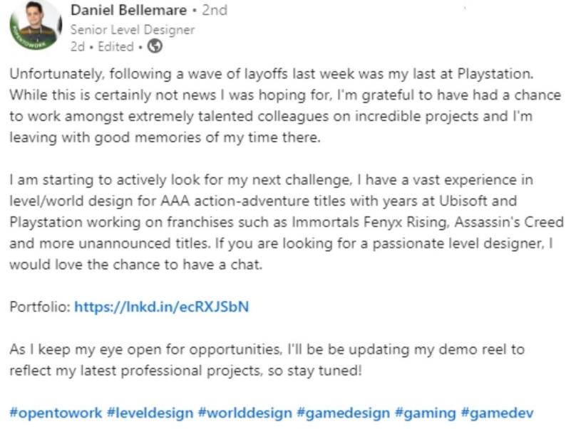Συγκεκριμένα 2 αναρτήσεις στο Linkedin, από τους Daniel Bellemare και Matt Barney υποδεικνύουν ότι αρκετοί υπάλληλοι της Sony Interactive Entertainment έχουν πληγεί από ένα νέο κύμα απολύσεων.