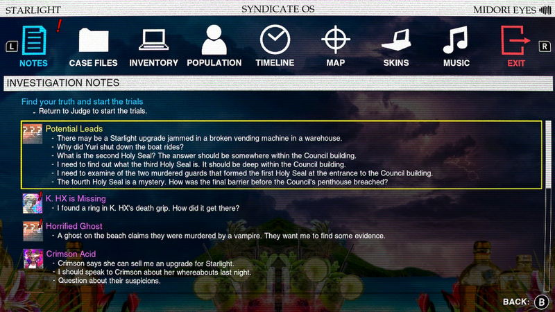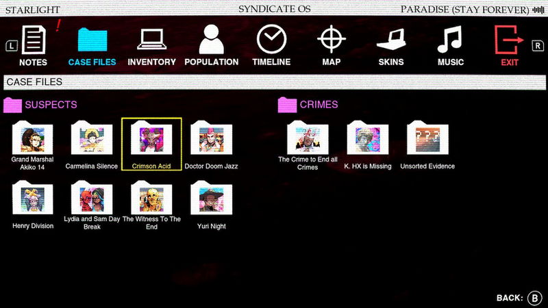 Όσον αφορά τον χειρισμό, πρόκειται για παιχνίδι πρώτου προσώπου. Μέσα από το menu έχετε πρόσβαση σε αντικείμενα, relics που μαρτυρούν ιστορίες τόσο των προηγούμενων Paradise όσο και προσωπικές, quest items, upgrade items. Ειδικά με τα τελευταία θα είστε σε θέση να αναβαθμίζετε το Starlight, τον προσωπικό σας υπολογιστή-memo, με διάφορα χαρακτηριστικά που θα κάνουν τη ζωή σας πιο εύκολη. Επίσης, υπάρχει η λίστα με τους υπόπτους και το βιογραφικό τους, τα στοιχεία και οι πληροφορίες με τα οποία θα διασυνδέσετε τους υπόπτους, χάρτης, wallpapers και άλλα. Κατά τη διάρκεια του παιχνιδιού μπορείτε να κάνετε fast travel από τα save points, θα επιδοθείτε σε ένα κυνήγι μαρτύρων αλλά και αντικειμένων, θα λύσετε γρίφους, θα ξεκλειδώσετε skills όπως το double jump και άλλα τα οποία θα συνδράμουν στην ανακάλυψη δυσπρόσιτων περιοχών καθώς και σε side quests που σας αναθέτουν NPCs. Σε κάθε σας σχεδόν βήμα θα συναντήσετε τον Δαίμονα Shinji ο οποίος θα έχει πάντα να σας εκμυστηρευτεί κάτι αμφιλεγόμενο και κυριολεκτικά ψυχωτικό! Καταπληκτική εμπειρία, mark my words!