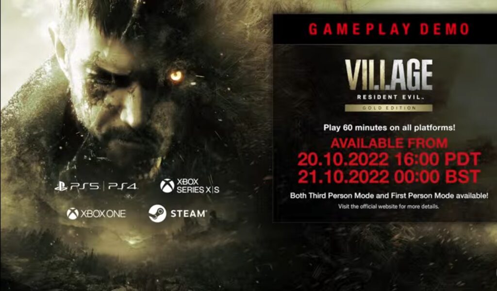 Ένα ευχάριστο νέο έχουμε, από το Resident Evil Showcase. Έχουμε την δυνατότητα να παίξουμε δωρεάν για 60 λεπτά το gameplay demo του Resident Evil Village. Ακόμη πιο ευχάριστο είναι το γεγονός πως θα μπορέσουμε να παίξουμε, σε τρίτο και πρώτο πρόσωπο. Το demo είναι διαθέσιμο για όλες τις κονσόλες από σήμερα 20-10-2022 έως 21-10-2022.