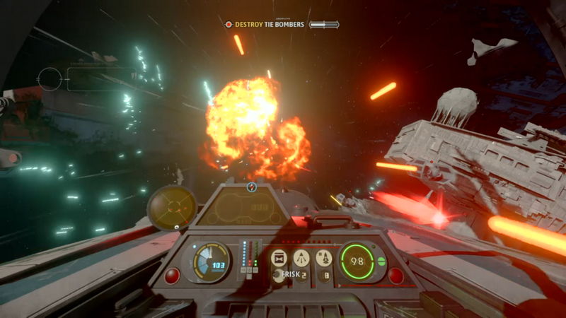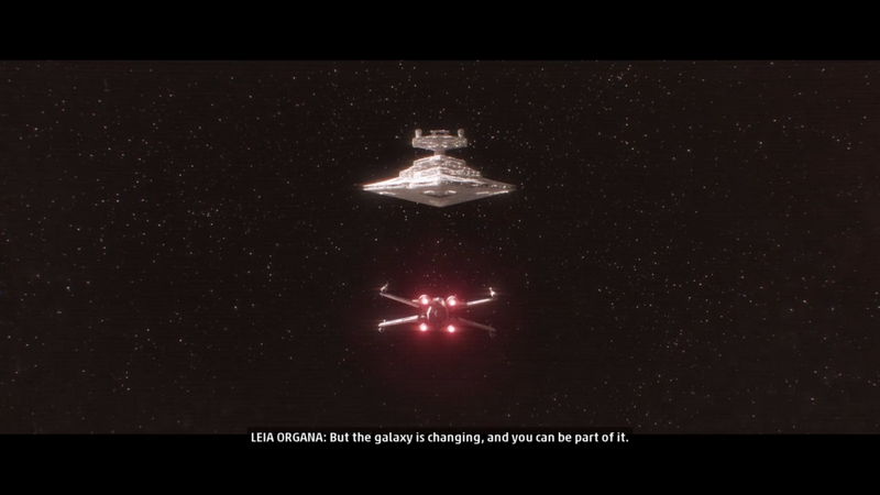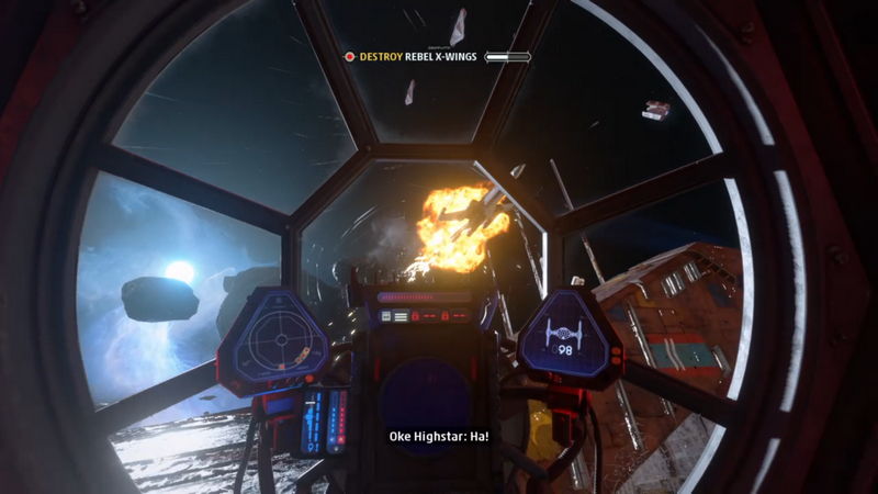 Το παιχνίδι εξελίσσεται σε 14 αποστολές μοιράζοντας έτσι την εμπειρία της ιστορίας ανάμεσα στις δύο πλευρές. Τα σκάφη κατηγοριοποιούνται σε classes· έτσι, από την σκοπιά της Empire, θα έχετε στη διάθεσή σας Fighter (TIE Fighter), Interceptor (TIE Interceptor), Bomber (TIE Bomber) και Support (TIE Reaper) και από την New Republic αντίστοιχα τα Fighter (X-Wing), Interceptor (A-Wing), Bomber (Y-Wing) και Support (U-Wing) με το κάθε σκάφος επιτελεί και τον αντίστοιχο ρόλο στα squadrons. Όσον αφορά τον χαρακτήρα σας, η προοπτική είναι πρώτου προσώπου και τον διαμορφώνετε όπως επιθυμείτε βάσει προκαθορισμένων προτύπων με κάποιες τυπικές επιλογές. Πριν και μετά τις αποστολές θα συμμετέχετε σε συζητήσεις με άλλους πιλότους ή τεχνικούς στο αντίστοιχο hangar, θα παρευρεθείτε σε briefing rooms όπου θα σας ανατίθενται αποστολές και γενικά θα «κινηθείτε» μέσα σε ένα διαλεκτικό περιβάλλον το οποίο βοηθάει να ενταχθείτε στο universe της σειράς με αναφορές στην πρώτη τριλογία -και όχι μόνο. Οι θιασώτες του franchise θεωρώ ότι θα αποδεχτούν τόσο τα canon στοιχεία όσο και τις νεότερες προσθήκες ενός διαρκώς εξελισσόμενου σύμπαντος χωρίς ιδιαίτερες εντάσεις. Κατά τη διάρκεια των αποστολών άλλοτε θα βρεθείτε υπερασπιζόμενοι συγκεκριμένους στόχους και άλλοτε θα αποδράσετε, θα συνοδεύσετε ή θα καταστρέψετε αυτοκρατορικά/επαναστατικά σκάφη. Γενικά, επαναλαμβάνονται στην πλειονότητα των περιπτώσεων αλλά δεν μου προκάλεσε ποτέ αίσθημα κορεσμού.