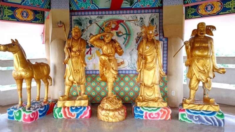 Η ιστορία του Sun Wukong εξιστορείται στο Ταξίδι Προς τη Δύση, ένα μυθιστόρημα του 16ου αιώνα μ.Χ., με συγγραφέα τον Wu Cheng’en. Σύμφωνα με αυτό, από αρχαιοτάτων χρόνων, στην κορυφή του Huaguo -του όρους των Λουλουδιών και των Φρούτων- υπήρχε μια μαγική πέτρα. Μία μέρα, ένας δριμύς αέρας ενέπνευσε ζωή στην πέτρα, από την οποία εκκολάφθηκε μία μικρή μαϊμού. Η μαϊμού μπορούσε ήδη να περπατήσει με δίποδη στάση και να μιλήσει τη γλώσσα των ανθρώπων, ενώ τα μάτια της έλαμπαν με ένα χρυσό, εκτυφλωτικό φως, που κατόρθωσε να φτάσει τα ουράνια και να ελκύσει την προσοχή του Αυτοκράτορα του Νεφρίτη Λίθου, που ήταν η ύψιστη θεότητα. Ωστόσο, μόλις αντίκρισε τη μαϊμού, ο Αυτοκράτορας θεώρησε πως είχε παρανοήσει το συμβάν και έστρεψε το βλέμμα του και πάλι αλλού.