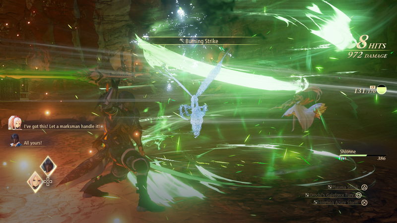 Το σύστημα μάχης είναι real time και είναι δομημένο έτσι ώστε η συνεργασία μεταξύ των χαρακτήρων να είναι τόσο αποτελεσματική όσο και διασκεδαστική. Τα έξι μέλη του party σας μπορείτε να τα εναλλάσσετε οποιαδήποτε στιγμή επιθυμείτε μέσα στη μάχη αλλά ελέγχετε πάντα το ένα με τα υπόλοιπα να καθοδηγούνται από την ΑΙ. Πέραν των κλασικών επιθέσεων και κινήσεων, dodge, air strikes και combos (με τα τελευταία να αποτελούνται από μια μπάρα η οποία προκαλεί μια πιο δυνατή κίνηση, την Strike), όλοι διαθέτουν τις Artes· πρόκειται για ειδικές κινήσεις που θα ξεκλειδώσετε κατά την εξέλιξη του παιχνιδιού με τις οποίες δημιουργούνται combos με ολέθρια αποτελέσματα για τον αντίπαλο. Τα skills του παιχνιδιού διακρίνονται σε «σφαίρες» τις οποίες ξεκλειδώνετε και αναβαθμίζετε με τα SP που συλλέγετε μετά τις μάχες. Επίσης, πέραν της μπάρας για τα combos υπάρχει επιπλέον μια ακόμα πιο προσωποποιημένη με την οποία ο χαρακτήρας -και εφόσον γεμίσει- προχωρά σε μια ειδική κίνηση, την Boost Strike, σε συνεργασία με άλλα μέλη της ομάδας.