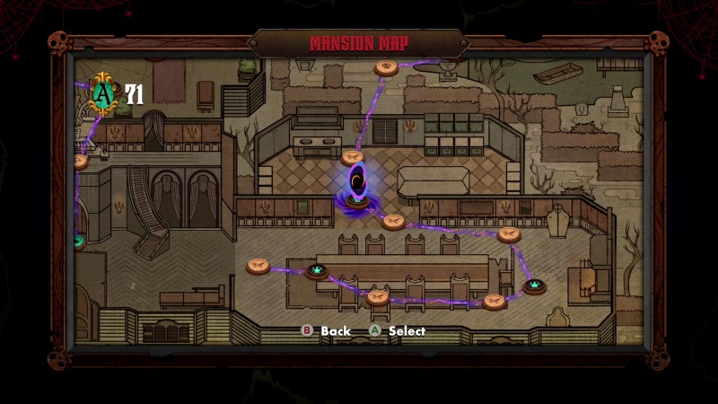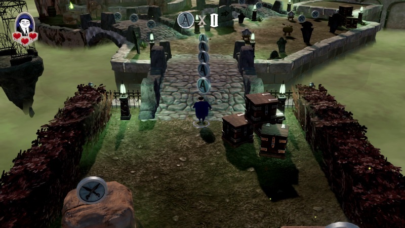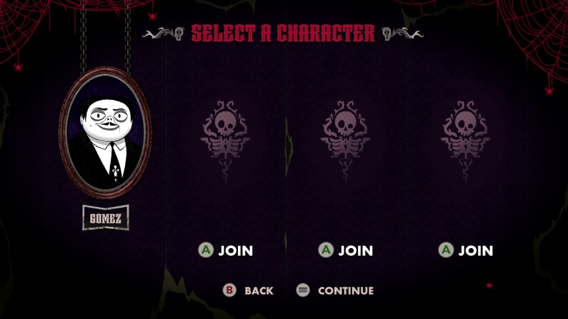 Μετά το πρώτο cut scene βλέπουμε την κάτοψη του σπιτιού και την δυνατότητα να πατήσουμε και να μπούμε στην πρώτη πύλη για να ξεκινήσουμε. Πριν την έναρξη της πρώτης μας αποστολής/πίστας πρέπει να επιλέξουμε παίχτη, ένα από τα τέσσερα βασικά μέλη της οικογένειας (Gomez, Mortisia, Wednesday, Pugsley). Στο παιχνίδι μπορούν παίξουν έως και τέσσερις παίχτες ταυτόχρονα. Σε κάθε αποστολή/πίστα έχουμε τρία βασικά objectives να κάνουμε. Το ένα είναι η συλλογή ενός αριθμού από δουβλόνια που βρίσκονται διάσπαρτα μέσα στην πίστα και τα άλλα δύο είναι η ανακάλυψη και συλλογή οικογενειακών κειμηλίων.