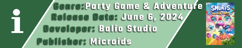 Το The Smurfs Village Party, που αναπτύχθηκε από την Balio Studio και εκδόθηκε από την Microids, ζωντανεύει τους αγαπημένους Στρουμφοχαρακτήρες σε ένα αρκετά διασκεδαστικό παιχνίδι που γίνεται…πάρτι! Το παιχνίδι συνδυάζει στοιχεία περιπέτειας και μίνι-παιχνιδιών για να δημιουργήσει μια ευχάριστη εμπειρία τόσο για παιδιά όσο και για ενήλικες που νιώθουν μια νοσταλγία από το franchise.