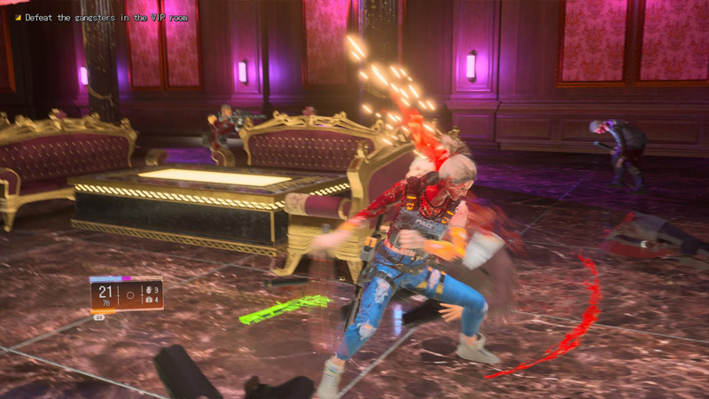H ιστορία του Wanted: Dead είναι όσο χαοτική θα περιμέναμε. Η Zombie Squad – μια ομάδα πρώην εγκληματιών που έχουν καταδικαστεί ισόβια – της αστυνομίας του Hong Kong αναλαμβάνει αποστολές καθαρισμού και εισβολής σε υπόπτους με αποτέλεσμα πολλές φορές να βρισκόμαστε μέσα σε καζίνο, εταιρείες, σπίτια πλουσίων και mercenary HQs θερίζοντας κάθε επίπεδο ασφαλείας που έρχεται προς τα εμάς. Με μικρά cutscenes προετοιμαζόμαστε για το χάος που ακολουθεί αλλά μαθαίνουμε λίγα πράγματα σχετικά με το σύμπαν και γιατί το κάνουμε. Επιπλέον, υπάρχουν στιγμές που οι σκηνές δεν έχουν κάποιο ιδιαίτερο νόημα και απλά δίνουν την αίσθηση πως προσπαθούν να φτιάξουν την ατμόσφαιρα ή να “χτίσουν” τους χαρακτήρες.